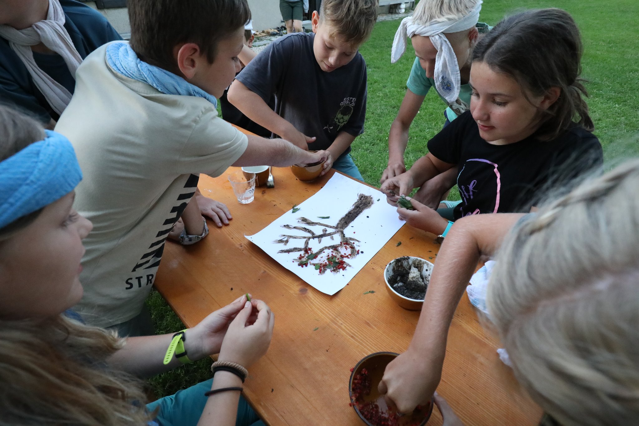 Wir müssen diese lösen und lernen dabei vieles über die Natur, basteln mit Naturmaterialien und kochen unser eigenes Menü vom Feuer.